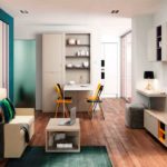 Amueblamiento pensado para espacios reducidos pero con el máximo aprovechamiento.