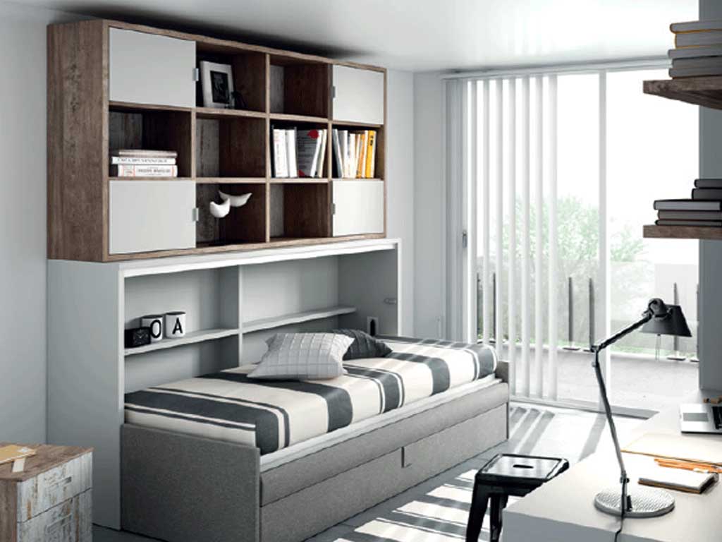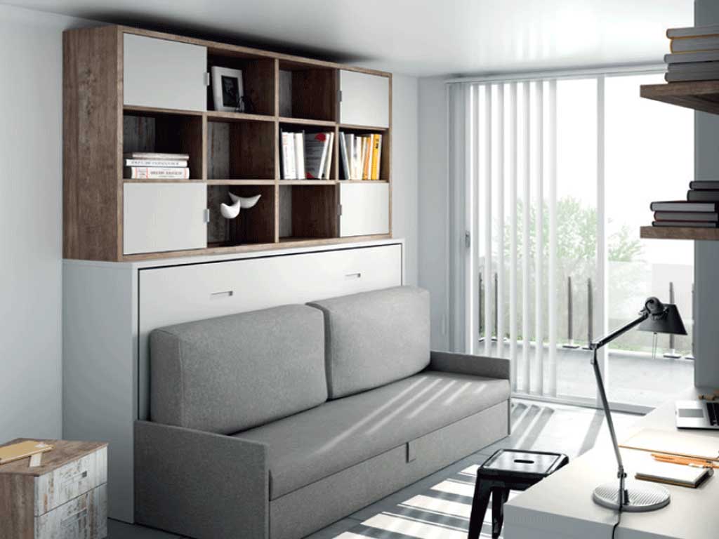 Cama abatible con sofá arcón . Armario-librería(opcional).