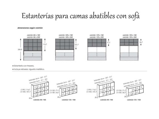 Librería interior incluida(cama abatible), muy práctica para colocar los objetos de uso diario como el despertador, móvil, libros….