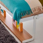 El frontal de la cama lleva un marco de aluminio ,de refuerzo para todo el perímetro. Se puede elegir el color blanco o aluminio.El colchón descansaría en la base de madera del frontal.