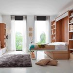La cama abatible de profundidad 60 cm lleva incorporado estantes interiores, muy prácticos para colocar libros ,el reloj despertador, accesorios…..