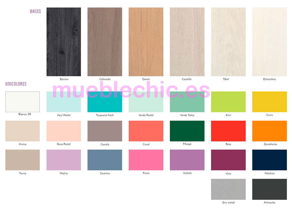 Los colores de los muestrarios pueden variar las tonalidades por ser fotografías.
