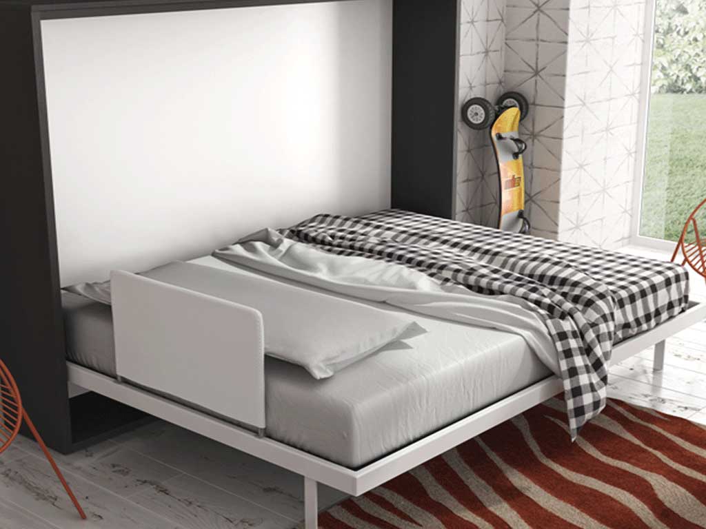 El sistema abatible se compone de una apertura sincronizada de patas, con guías de amortiguación inteligentes y regulables, con el que conseguirás la máxima funcionalidad. Y con el que podrás desarrollar todo un programa de ambientes diferentes ( matrimonio, juvenil, salón o estudio).