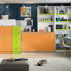 El sistema abatible se compone de guías de amortiguación inteligentes y regulables, con el que conseguirás la máxima funcionalidad. Y con el que podrás desarrollar todo un programa de ambientes diferentes ( matrimonio, juvenil, salón,estudio………..).