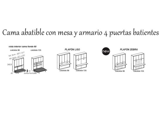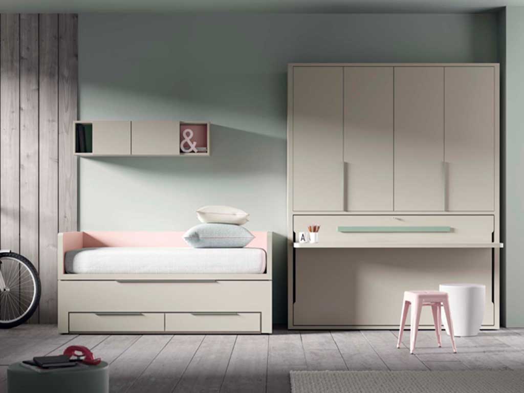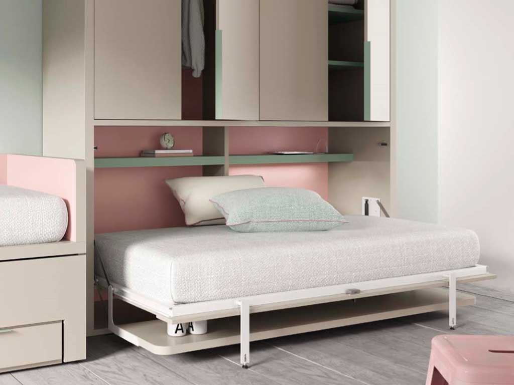 Sistema de cama abatible con escritorio incorporado y armario Modelo Plus.