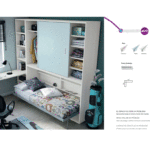 Este sistema abatible nos permite aprovechar nuestra habitación cuando la cama esta plegada y tener un espacio para estudio,juegos…..