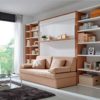 La cama abatible de profundidad 60 cm lleva incorporado estantes interiores, muy prácticos para colocar libros ,el reloj despertador, accesorios…..