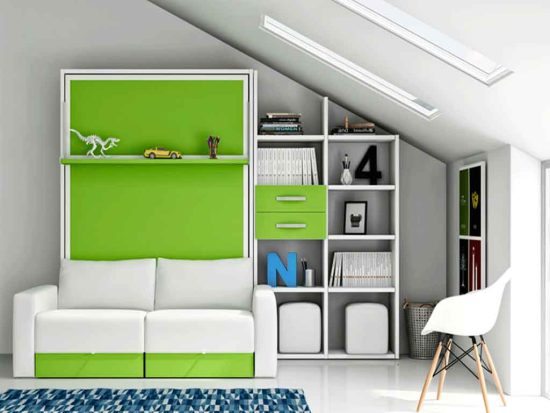 FUNCIONALITY además te da la opción de completar tu cama abatible con sofá junto con librerías, estanterías, módulos, armarios y todo tipo de muebles.