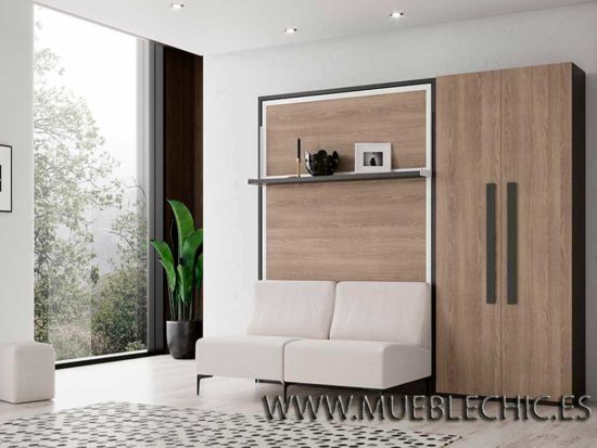 CAMA ABATIBLE VERTICAL ESTANTE CON SOFÁ RUMBA