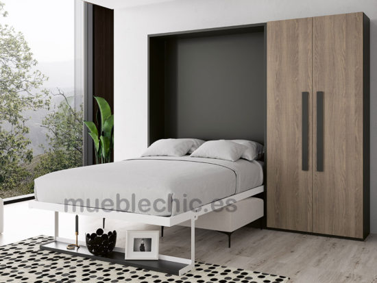 CAMA ABATIBLE VERTICAL CON ESTANTE Y SOFÁ RUMBA.(Armario no incluido en el precio).