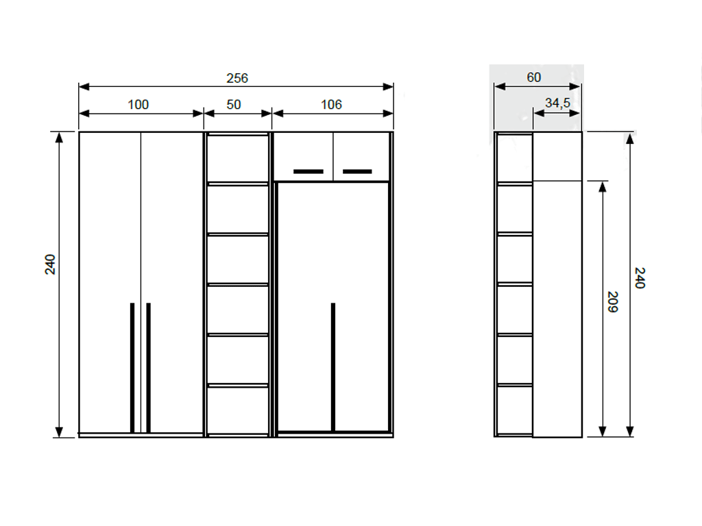 Grosor de la estructura 3 cm. Profundidad del mueble 34,5 cm.