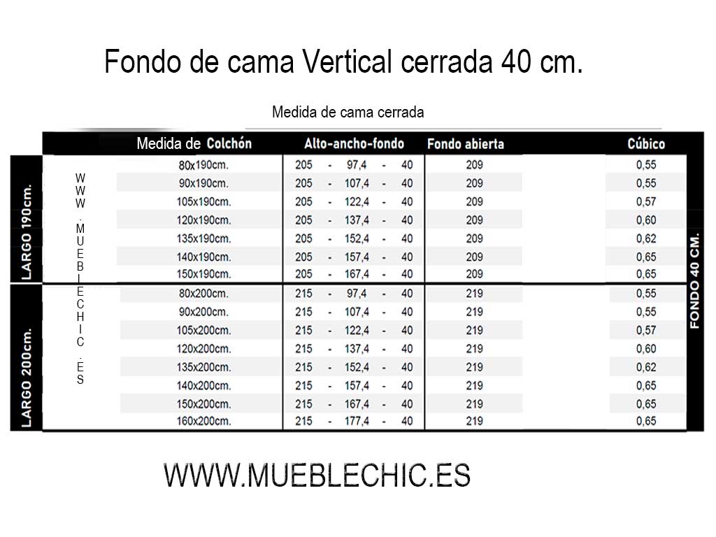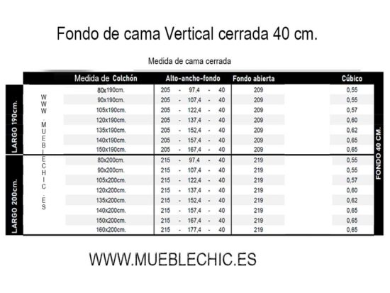 Con posibilidad de poder colocar un colchón de mas grosor pero con incremento de profundidad del mueble. Siempre bajo consulta.