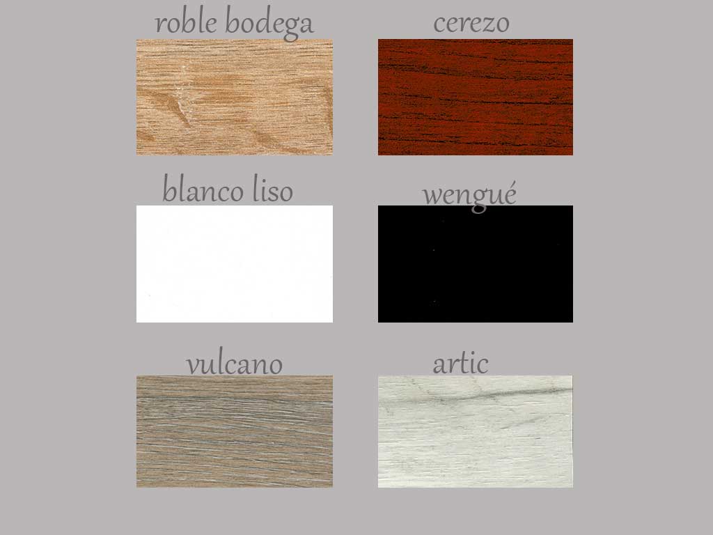 COLORES MADERAS | BLANCO, CEREZO, WENGUE, ROBLE BODEGA, VULCANO, ARTIC |