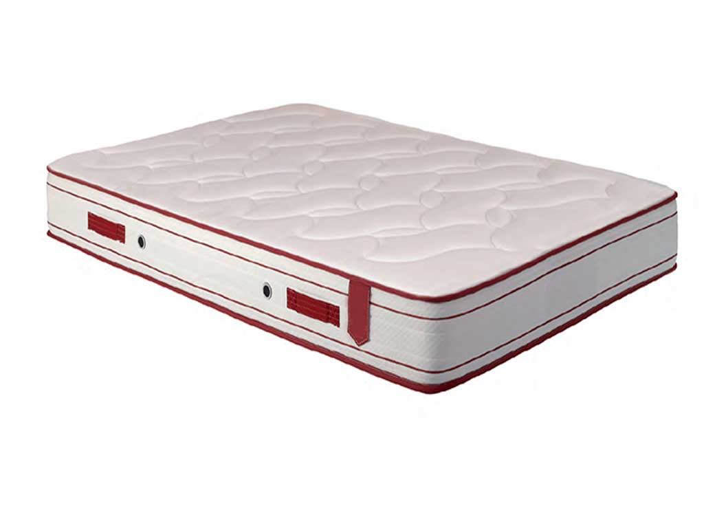 Colchón de muelles, acolchado exclusivo, tejido stretch transpirable y con válvulas para una perfecta ventilación. Asas para transportar y voltear el colchón fácilmente.
