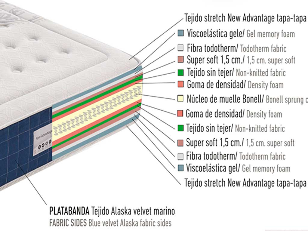 Fibra todoterm: Fibra térmica especial pensada para absorber la humedad que produce el cuerpo durante el descanso, manteniendo el colchón más limpio y evitando posibles perjuicios para la salud.