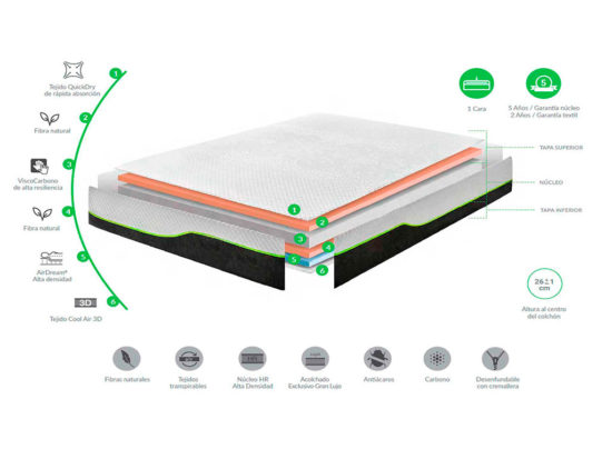 Con el colchón Suvari tendrás toda la sencillez de un colchón clásico con las características supremas que le aporta a cualquier modelo la viscoelástica y el HR.