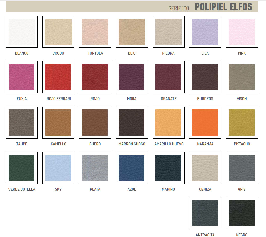 | COLORES TAPIZADOS | TEJIDO FAROLES, M.BLANCO, M.PIEDRA, M.MOSTAZA, M.OCRE, M.CUERO, M.CHOCO, M.VINO, M.TURQUESA, M.PLATA, M.HAMSTER, M.ANTRACITA, M.NEGRO, P.BLANCO, P.CRUDO, P.TORTOLA, P.BEIG, P.PIEDRA, P.LILA, P.PINK, P.FUXIA, P.ROJO FERRARI, P.ROJO, P.MORA, P.GRANATE, P.BURDEOS, P.VISON, P.TAUPE, P.CAMELLO, P.CUERO, P.MARRON CHOCO, P.AMARILLO HUEVO, P.NARANJA, P.PISTACHO, P.VERDE BOTELLA, P.SKY, P.PLATA, P.AZUL, P.MARINO, P.CENIZA, P.GRIS, P.ANTRACITA, P.NEGRO, TEJIDO PARÍS |