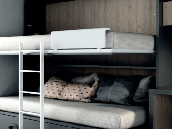Triple cama en 2,07 metros .Posibilidad de interior a color tanto en la cama abatible como en la zona de estudio.