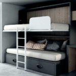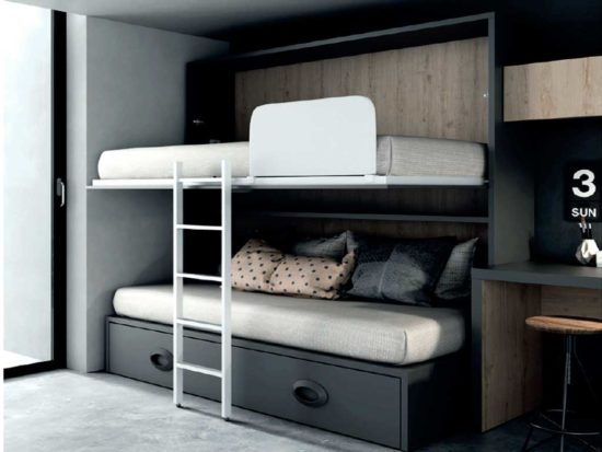 Litera abatible con cama superior y 2 camas inferiores nido.