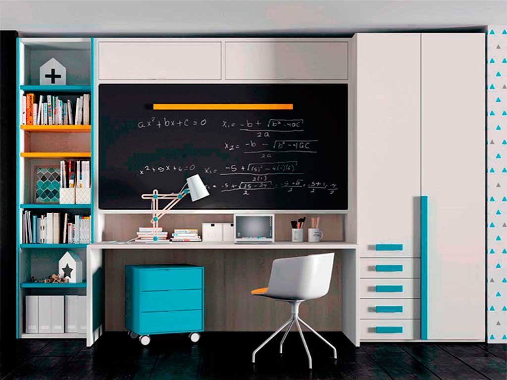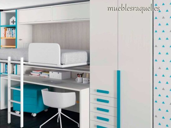 Litera abatible con escritorio inferior con o sin altillo superior, apta para instalación en paredes de Pladur. La instalación se tiene que anclar al techo de obra ,no puede ser techo de escayola, pladur o similares.