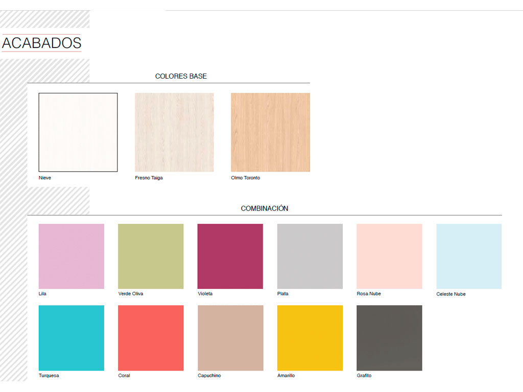 | COLORES ESTRUCTURA | OLMO TORONTO, FRESNO TAIGA, NIEVE |