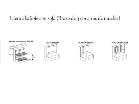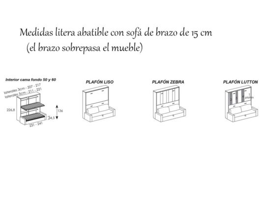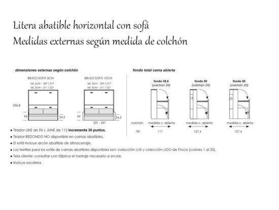 El sofá es a medida de la cama y el brazo puede ser de grosor de 15 cm 0 de 3 cm.(De serie en el precio está el grosor de brazo de 3 cm).De grueso 15 cm incrementaría el precio + 100€.