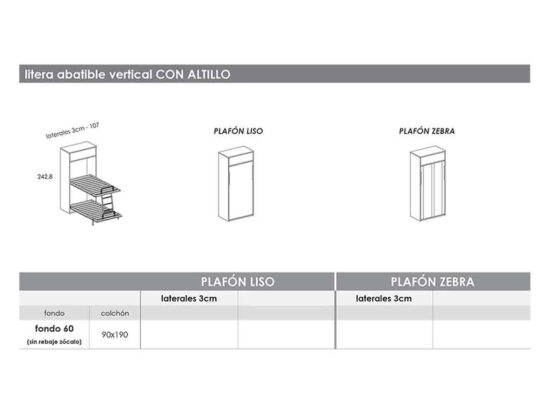 -Para interior 90 x 190 cm con altillo. Medida exterior: