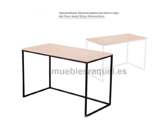 Mesa con tapa estratificado. Estructura metálica color blanco o negro.