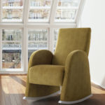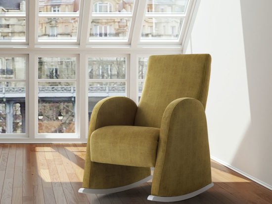 Una divertida pieza, cuya principal función es de ser mecedora, además de un cómodo sillón, de proporciones muy equilibradas. Le permitirá, combinar el tejido que mas le agrade, junto a sus patas de madera.