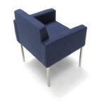 El sillón FREE manifiesta un minimalismo estético conformado por volúmenes retos y modernos, con adecuadas proporciones y comodidad. Tenemos tres opciones de patas: las de madera, las metálicas de sección cuadrada, y por último las de un solo eje con base circular en acabado cromado.
